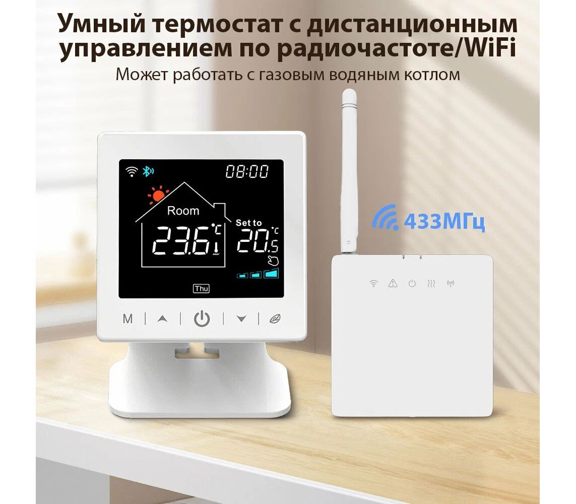 Умный WiFi термостат для водяного, газового котла с голосовым управлением и радио модулем RF433 MHZ.